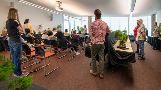The 17th Annual Bonsai Show was held once more at the Surrey City Centre Public Library from Saturday, May 31st, 2025, to Sunday, June 1st, 2025. The event was highly successful, attracting over 400 visitors over the two days. Despite the heavy rain on Saturday morning, our members braved the weather to set up their bonsai displays. Darren, our president, gave a presentation on cultivating Japanese Maple bonsai.